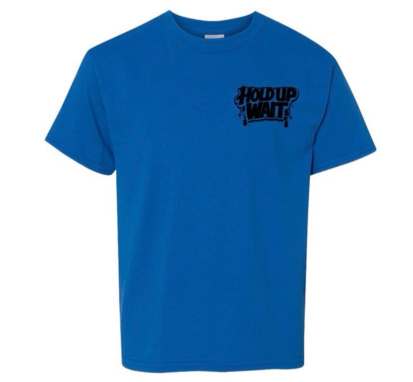 Blue -Tee Black Hold Up Wait logo